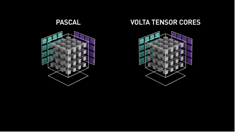 The fundamental approach behind this was that Tensor Core was specialized to multiply two 4×4 FP16 matrices and add 4×4 FP16 or FP32 matrices in it (FP stands for Floating Point). Such matrice operations are quite common in neural networks hence the advantage of having a dedicated Tensor Core optimized enough to execute them faster than traditional CUDA core.