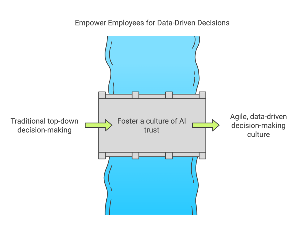 - Redefine Leadership Roles: Leaders should model data-driven decision-making and empower employees to use AI insights. Flattening hierarchies can accelerate decision processes and promote innovation.